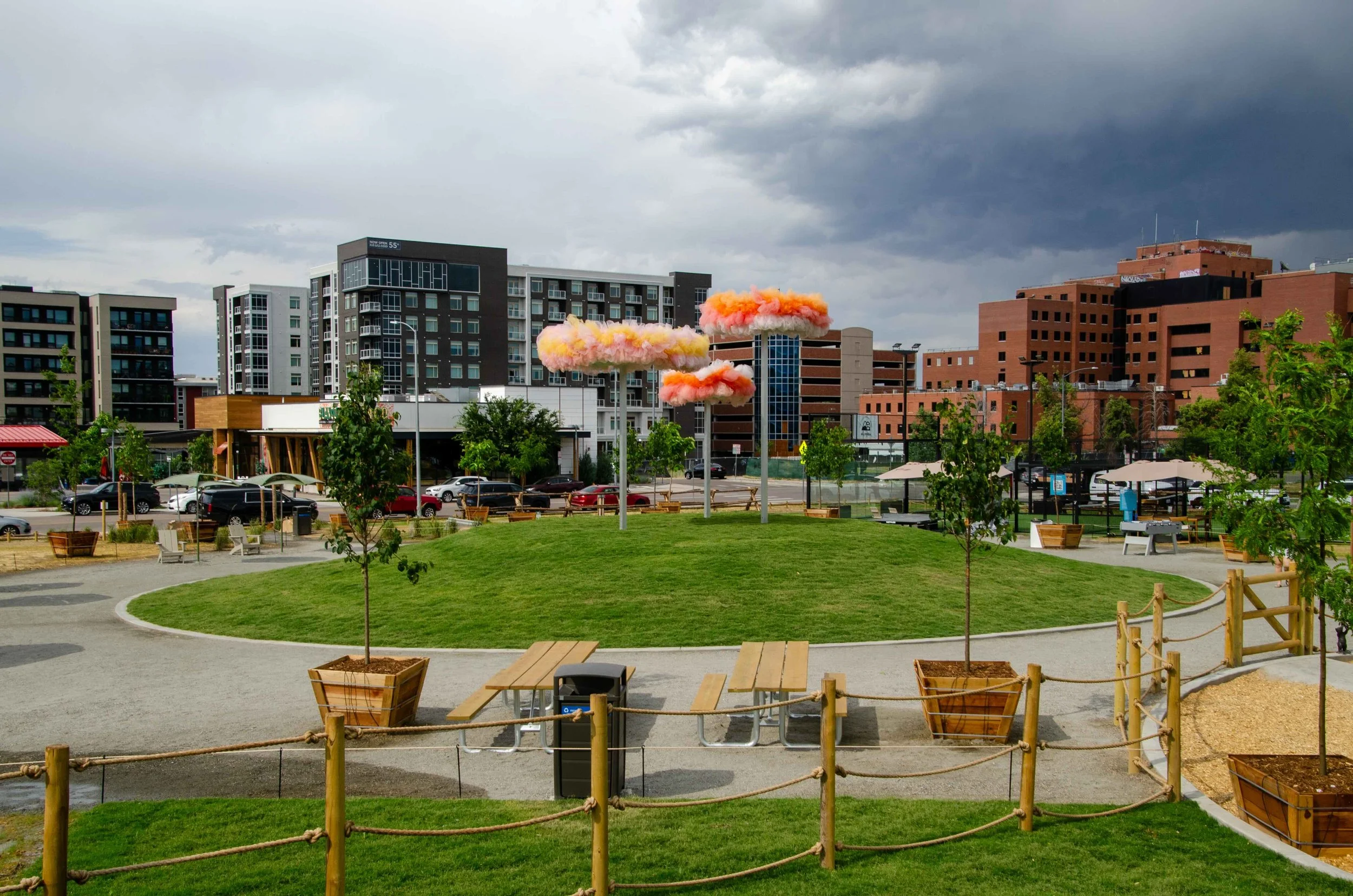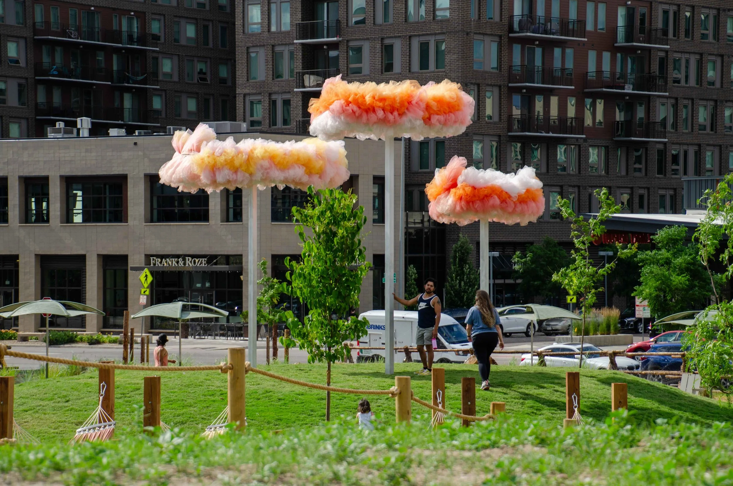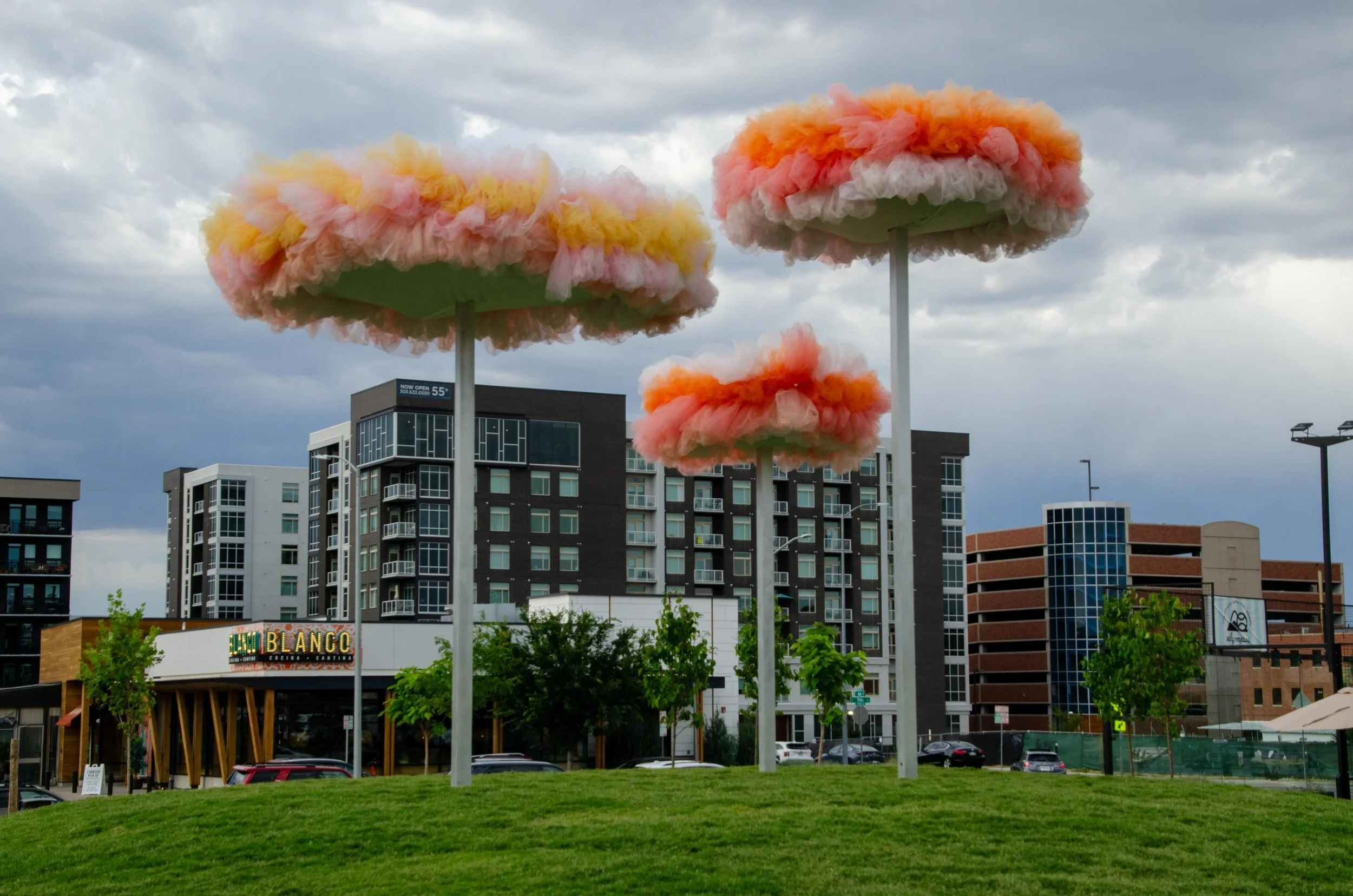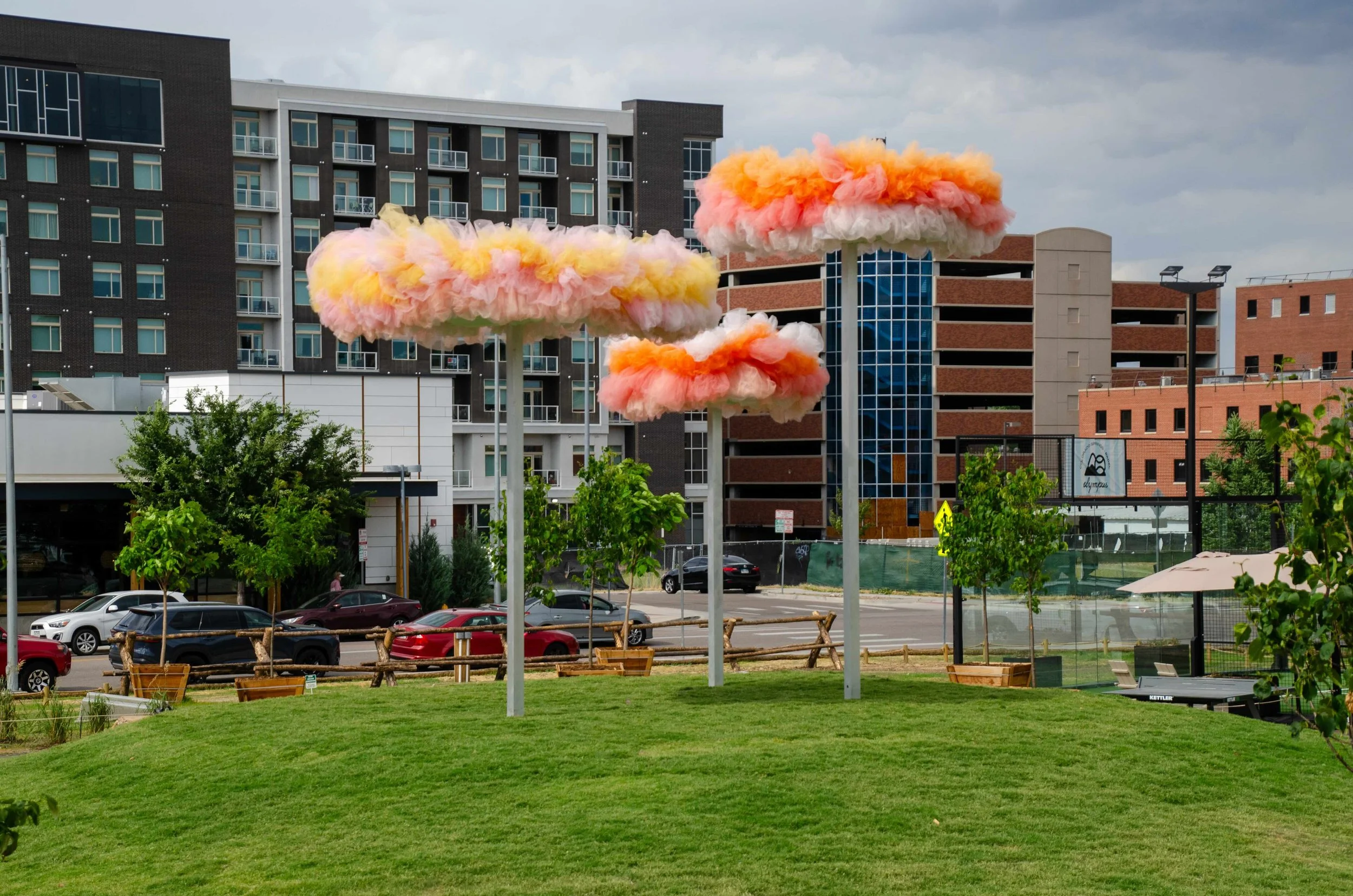 The installation, currently on view, marks the opening of Cloud Nine Park, a community space nestled in the 9+CO redevelopment project at 9th Ave and Colorado Blvd.