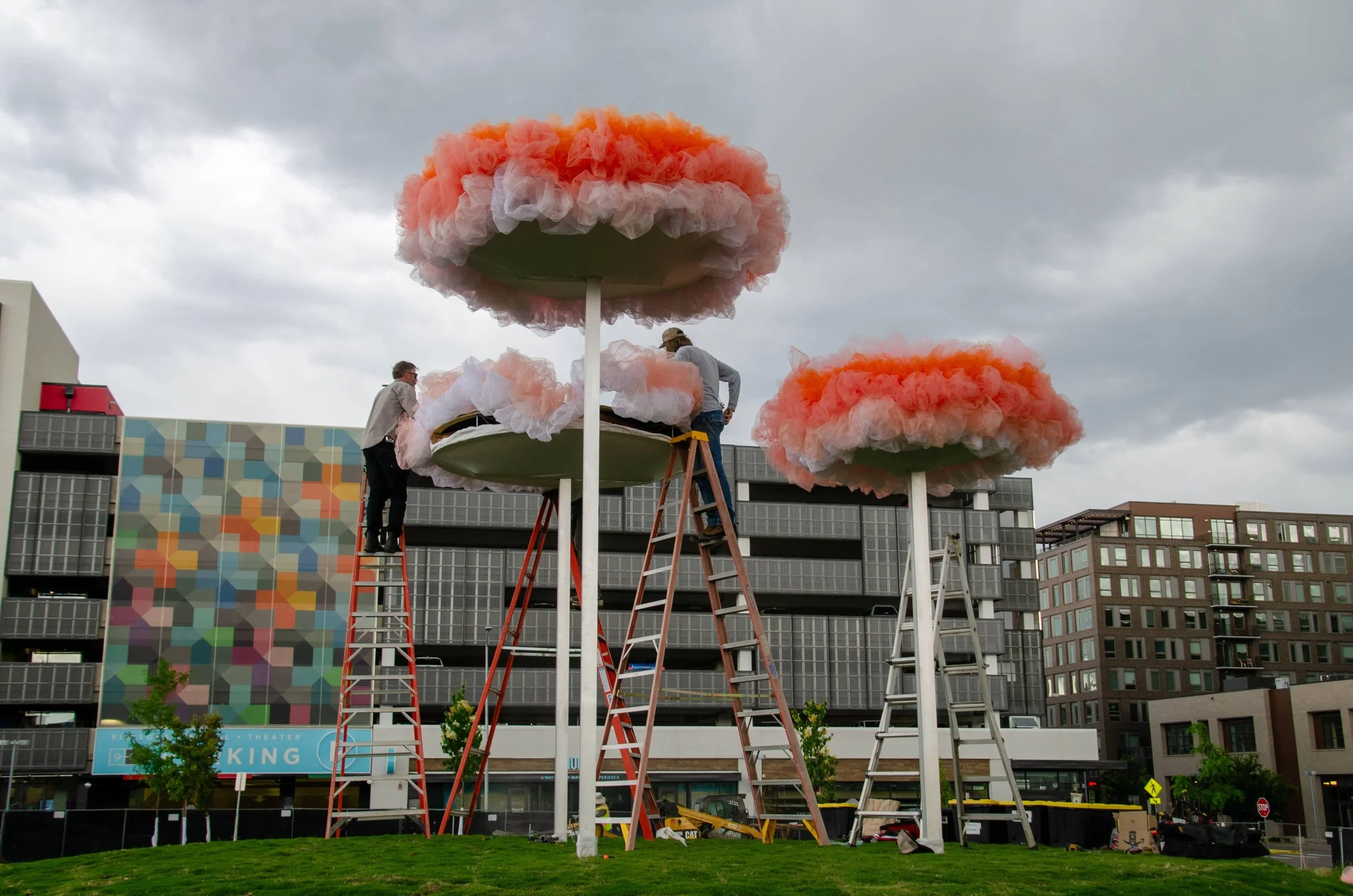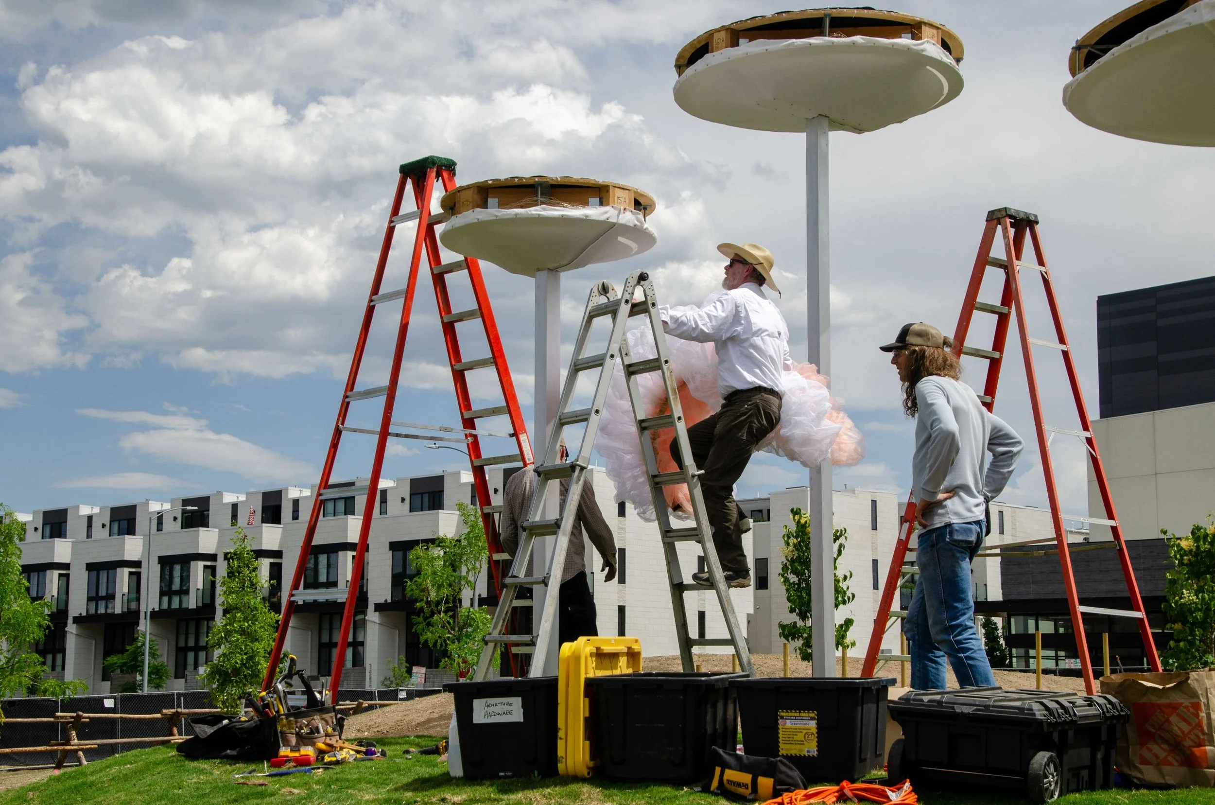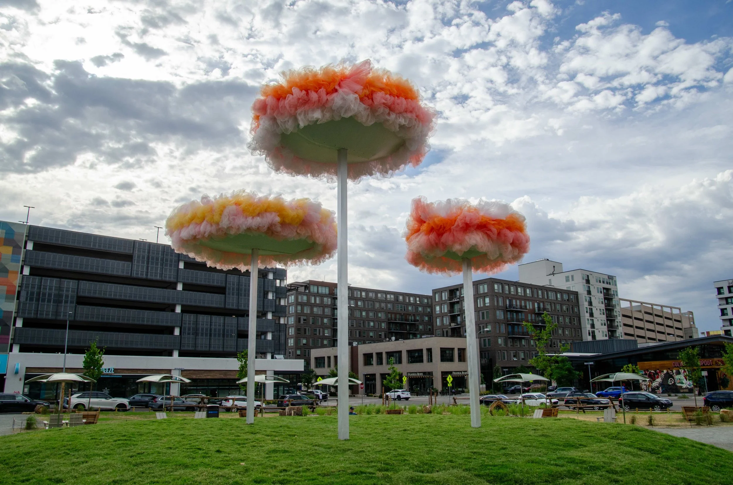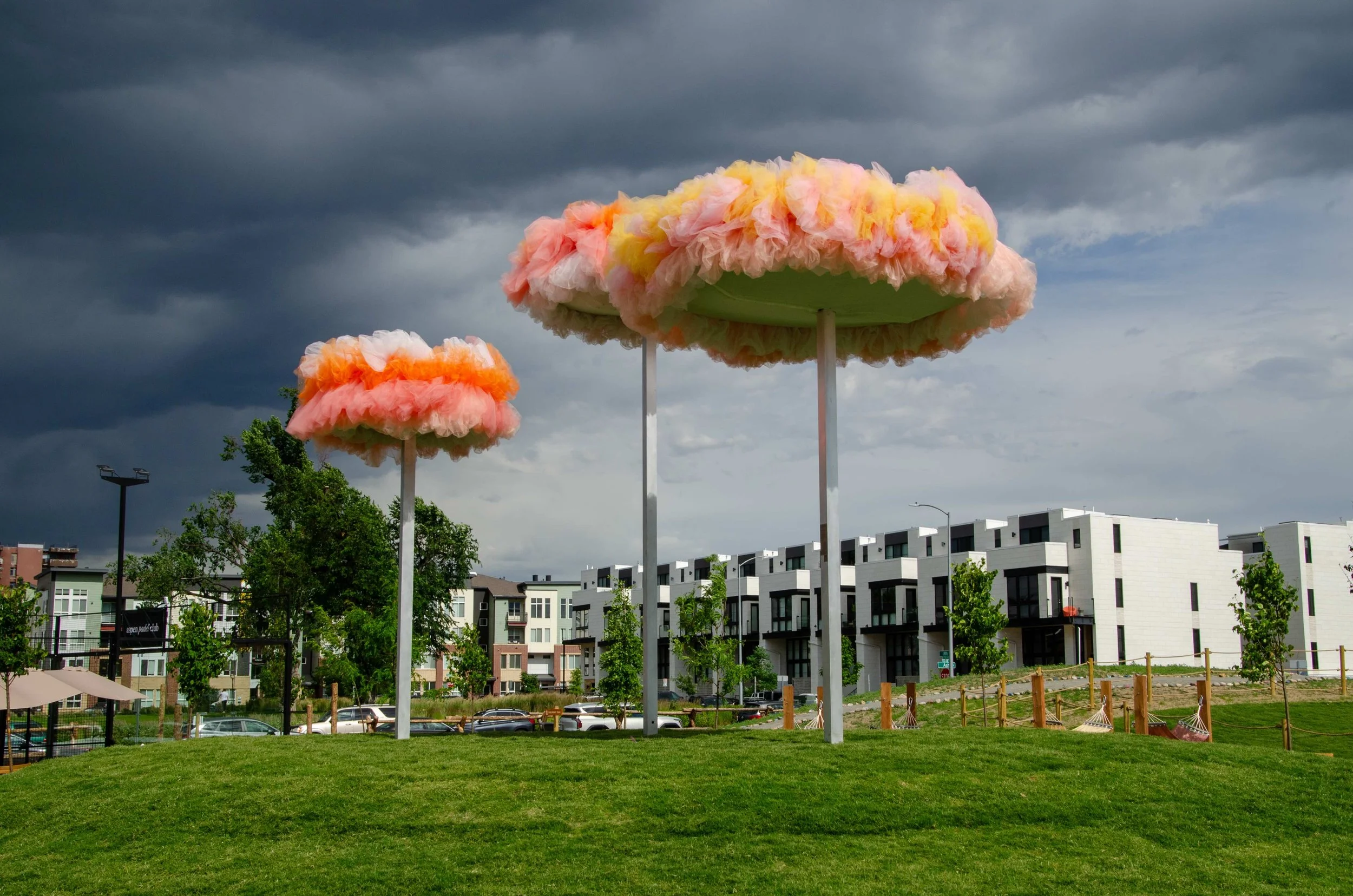 The installation, currently on view, marks the opening of Cloud Nine Park, a community space nestled in the 9+CO redevelopment project at 9th Ave and Colorado Blvd.