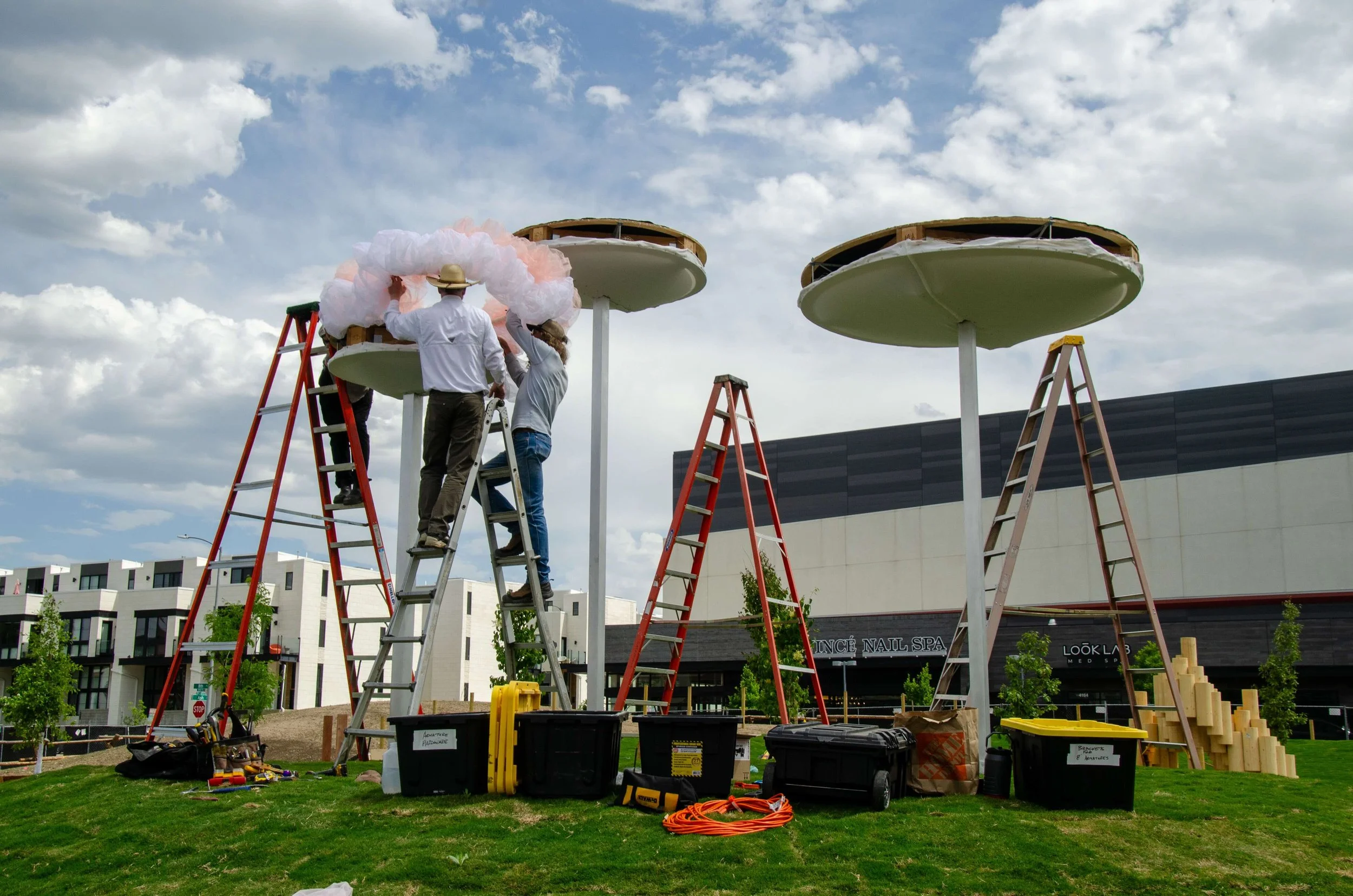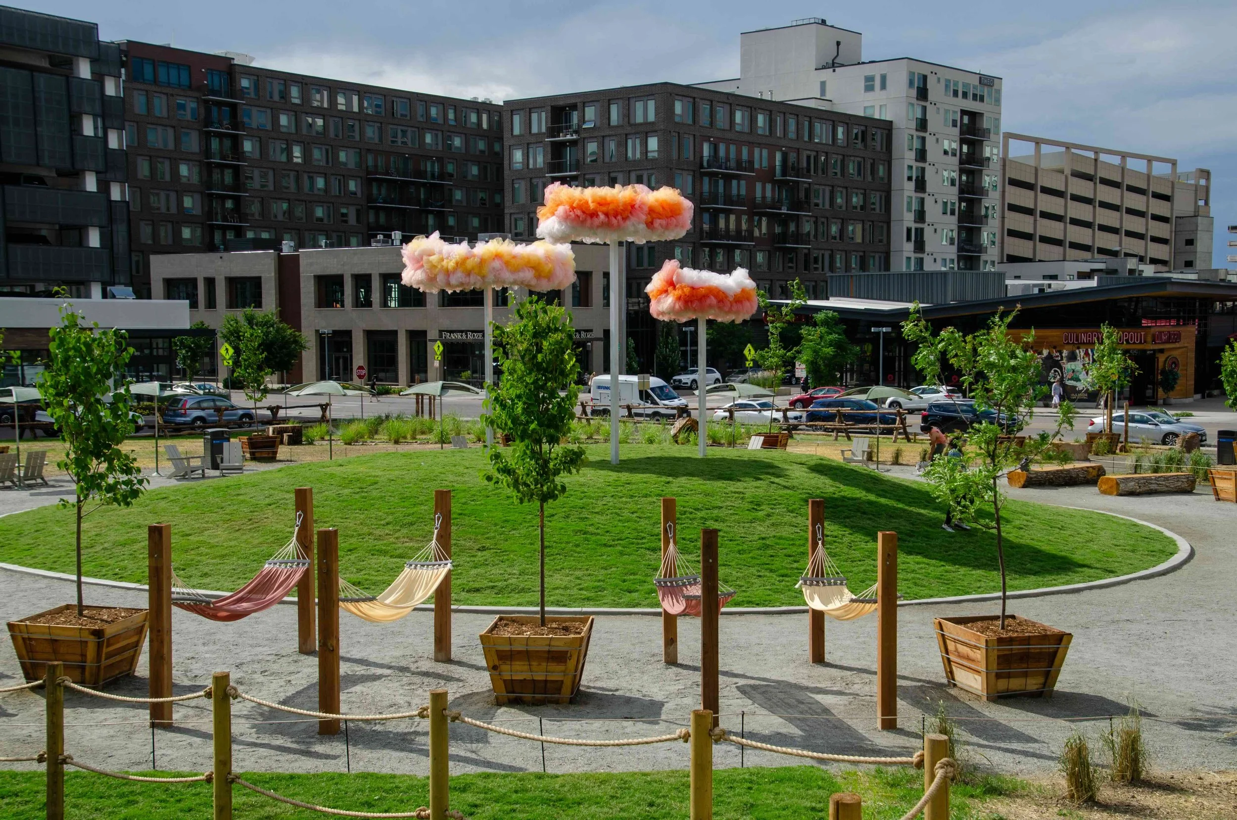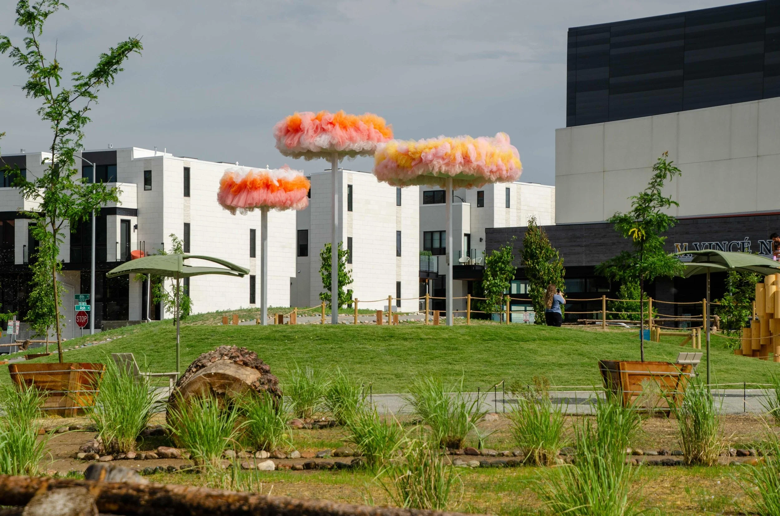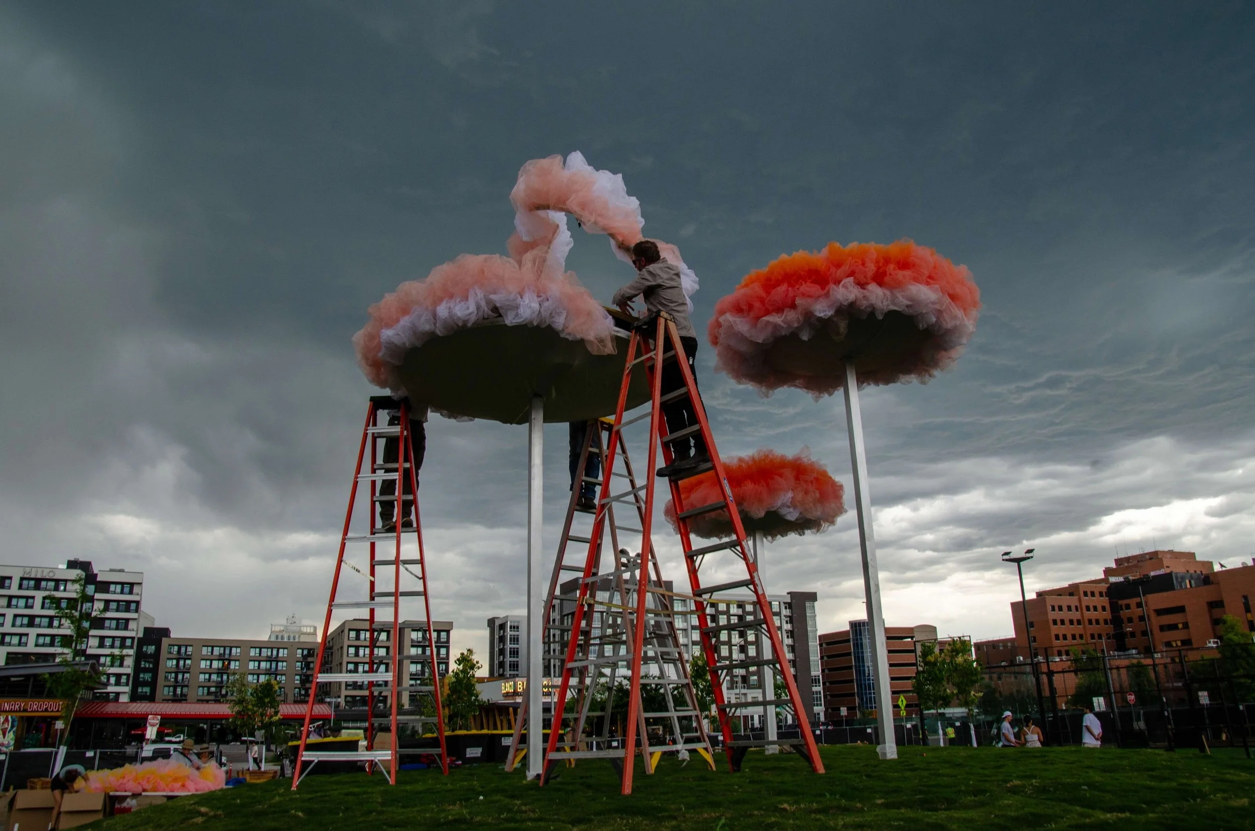 The installation, currently on view, marks the opening of Cloud Nine Park, a community space nestled in the 9+CO redevelopment project at 9th Ave and Colorado Blvd.