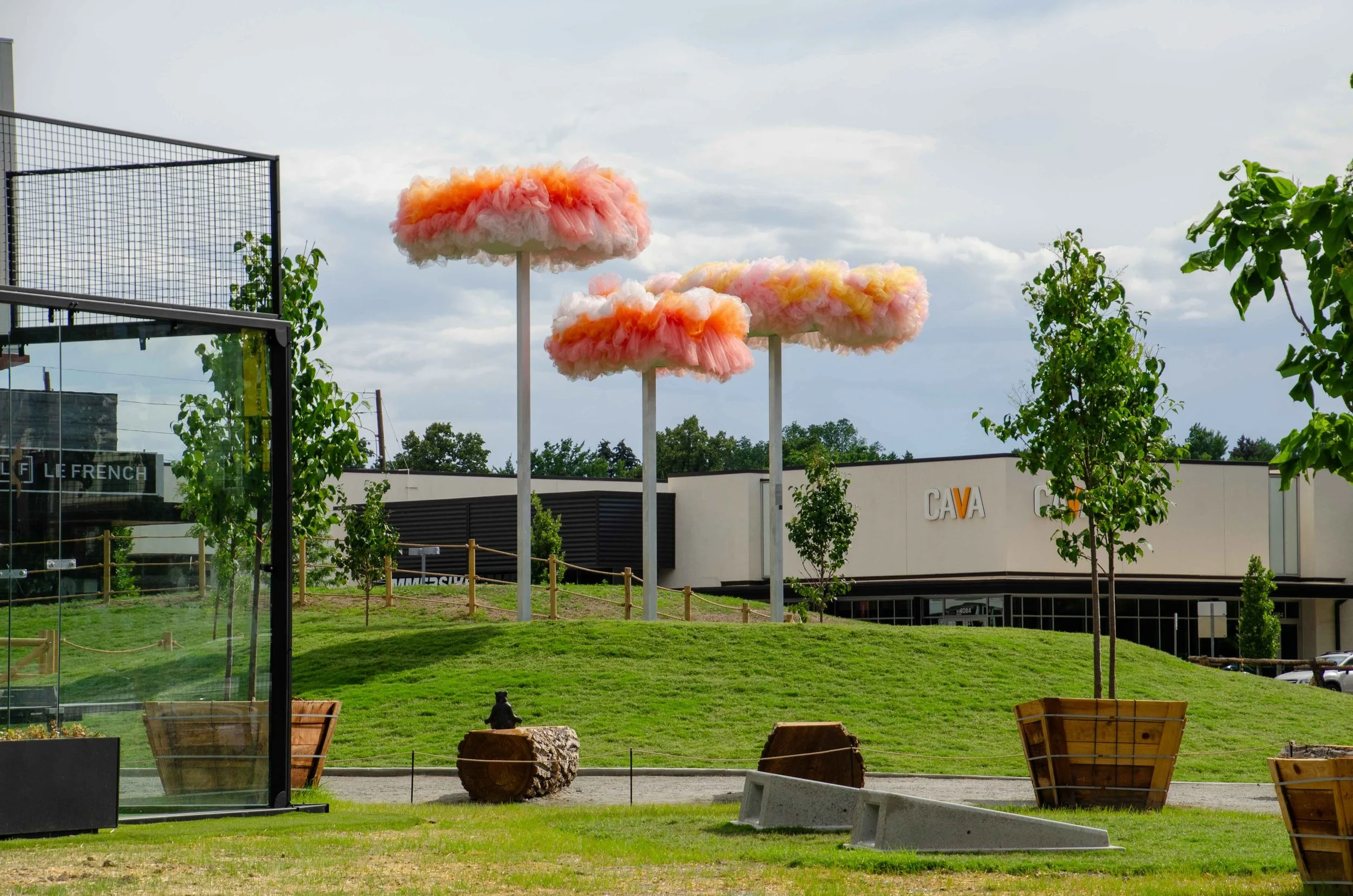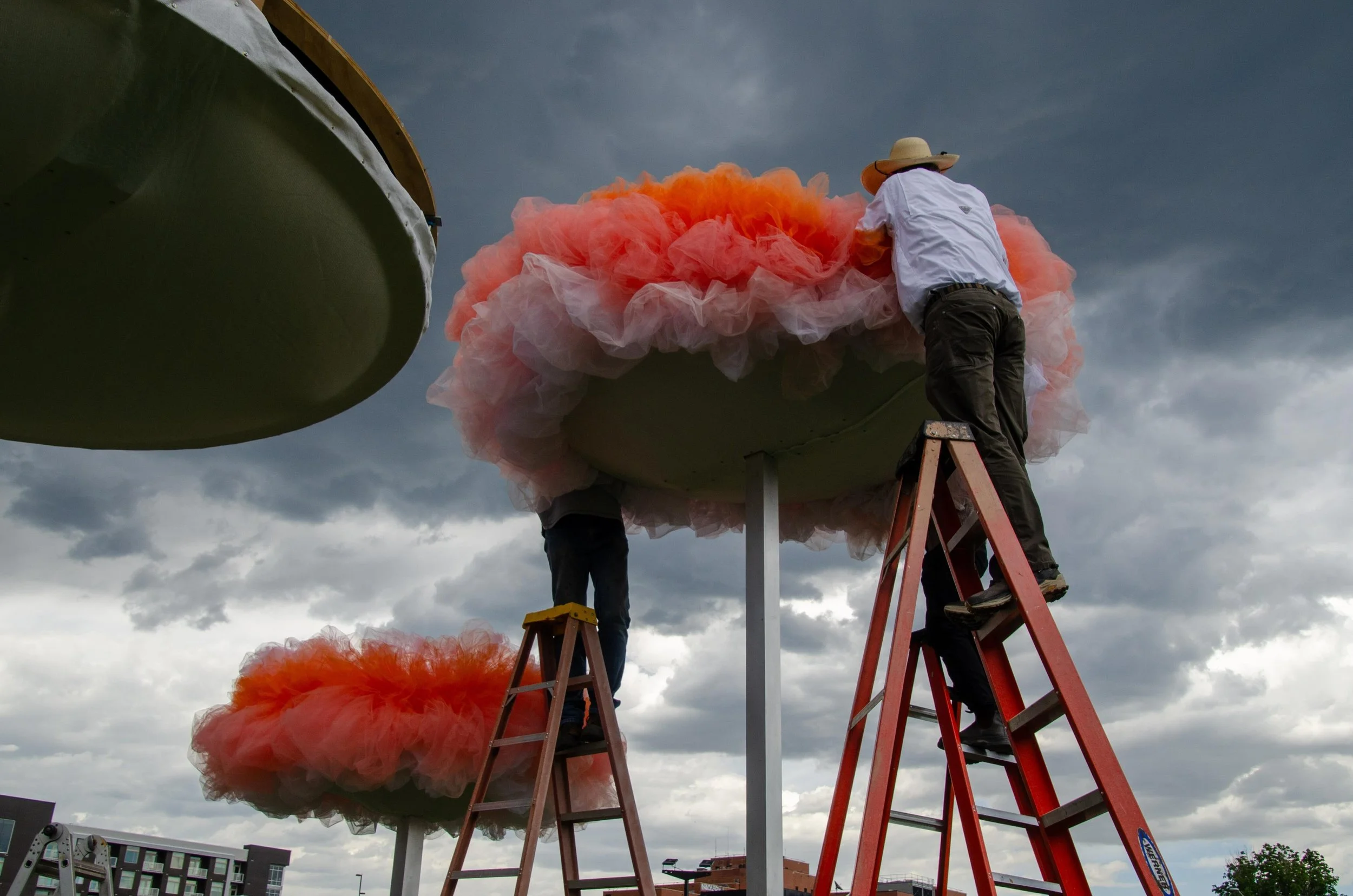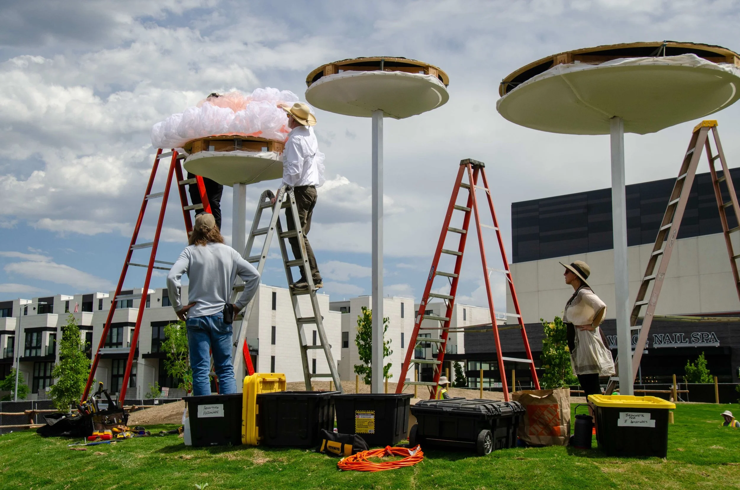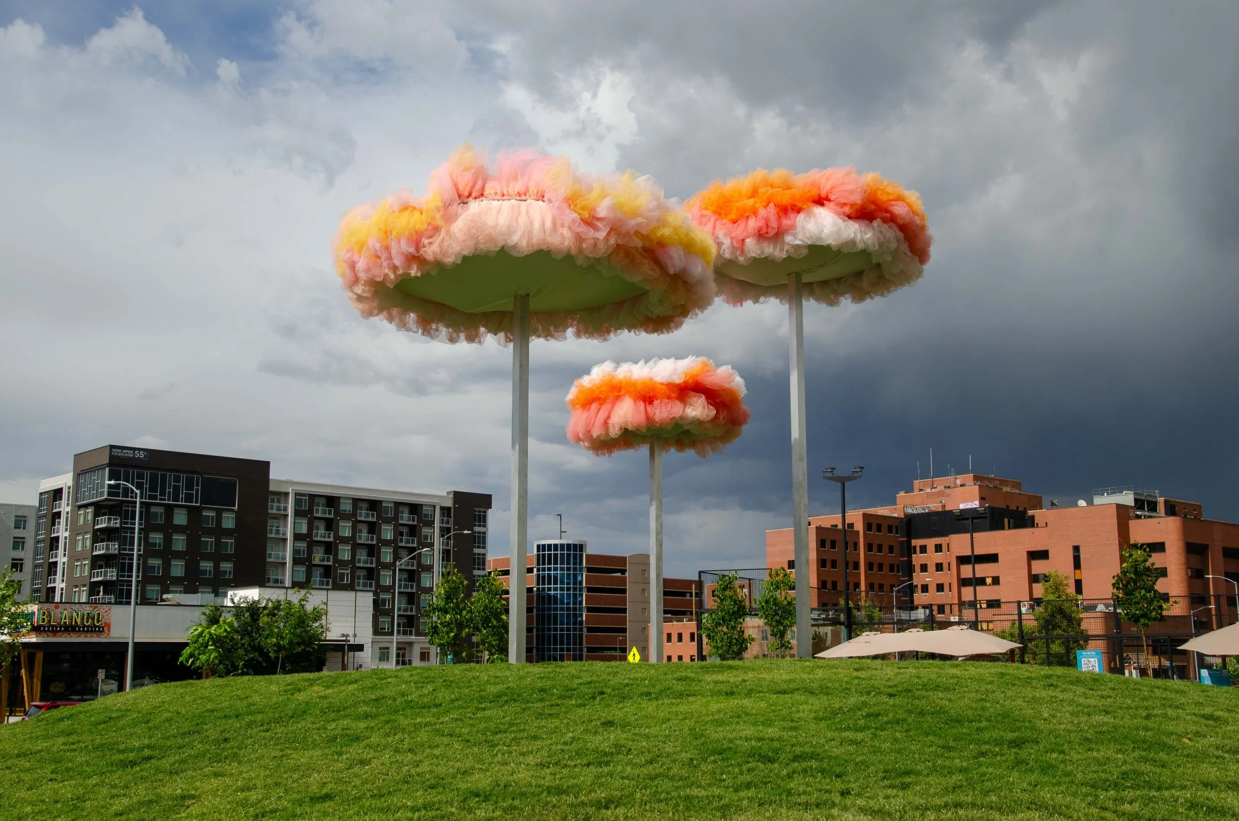 The installation, currently on view, marks the opening of Cloud Nine Park, a community space nestled in the 9+CO redevelopment project at 9th Ave and Colorado Blvd.