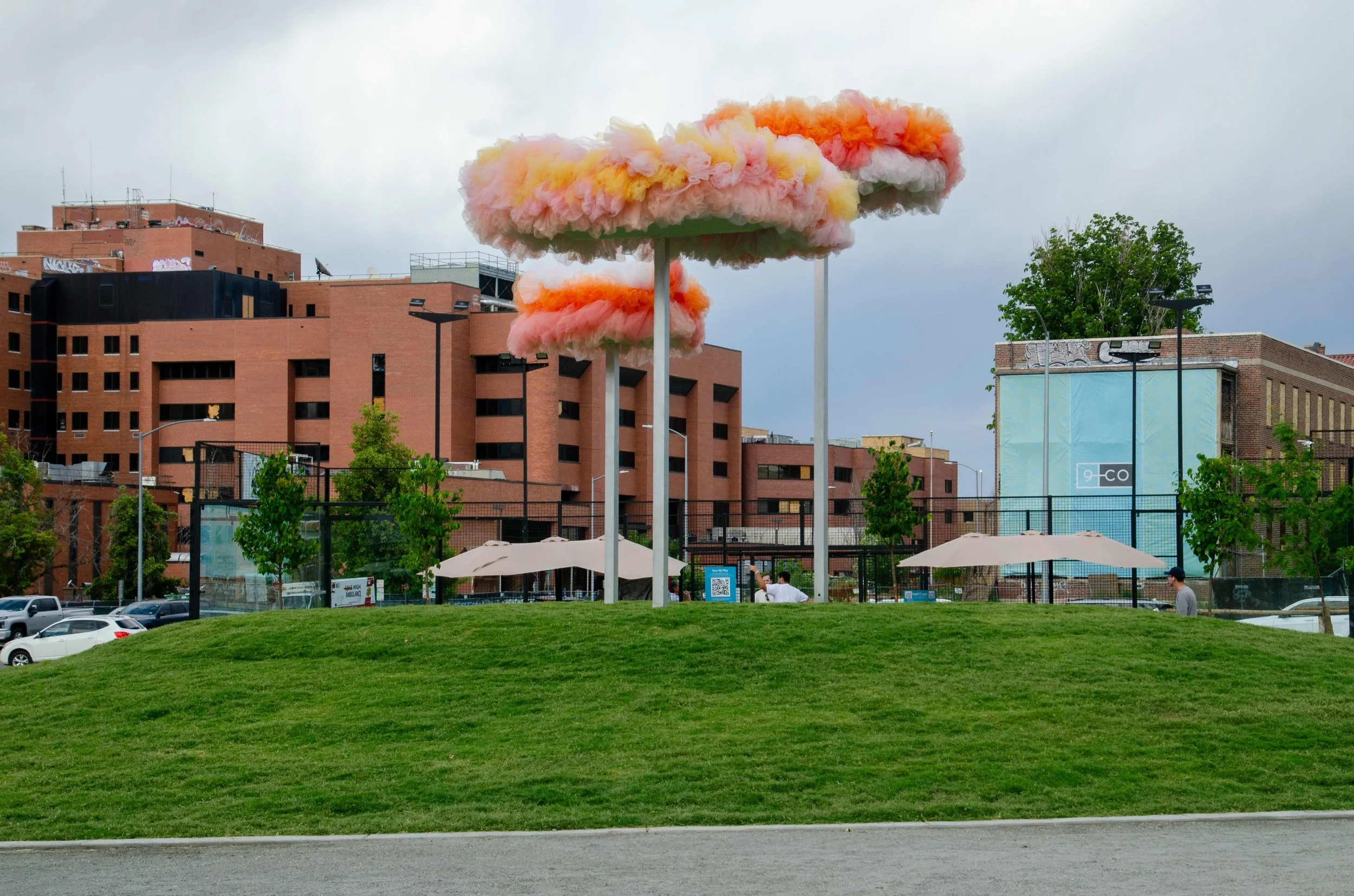 Ana María Hernando’s temporary public art installation To Let the Sky Know / Dejar que el cielo sepa was installed at Cloud Nine Park at 9+CO Denver in June of 2025. This installation features three components of the fifteen-part public piece originally commissioned and installed at the Madison Square Park in New York City to inaugurate the 20th anniversary year of the Madison Square Park Conservancy’s art program, launched in 2004.